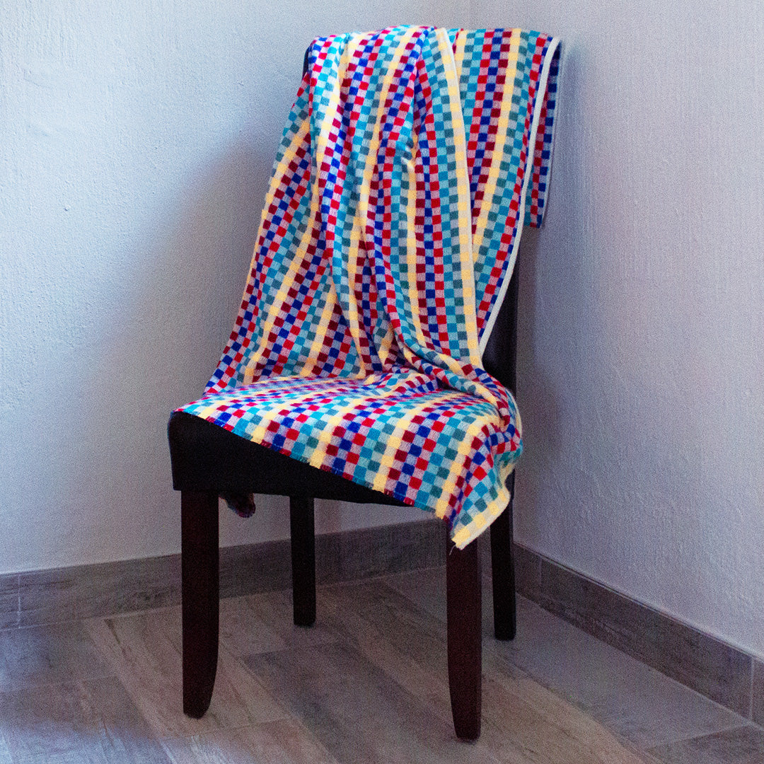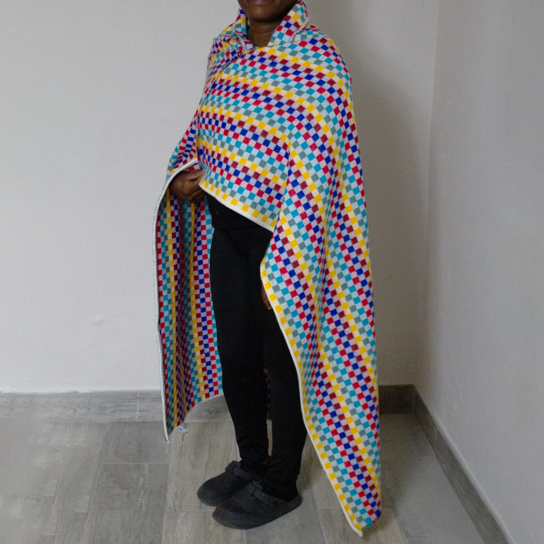 This colourful throw can be worn or used to add colour to your home or outdoors.