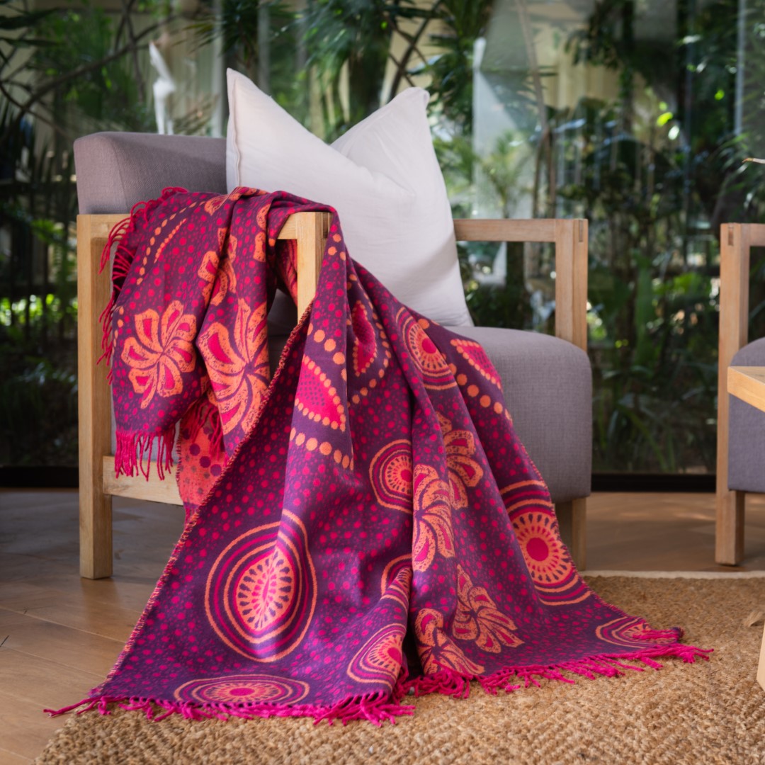 The colourful Shweshwe fabric of Southern Africa was the inspiration behind this vibrant throw. Named after 19th Century Sotho King, Moshoeshoe 1, Shweshwe is the quintessential fabric of Southern Africa.