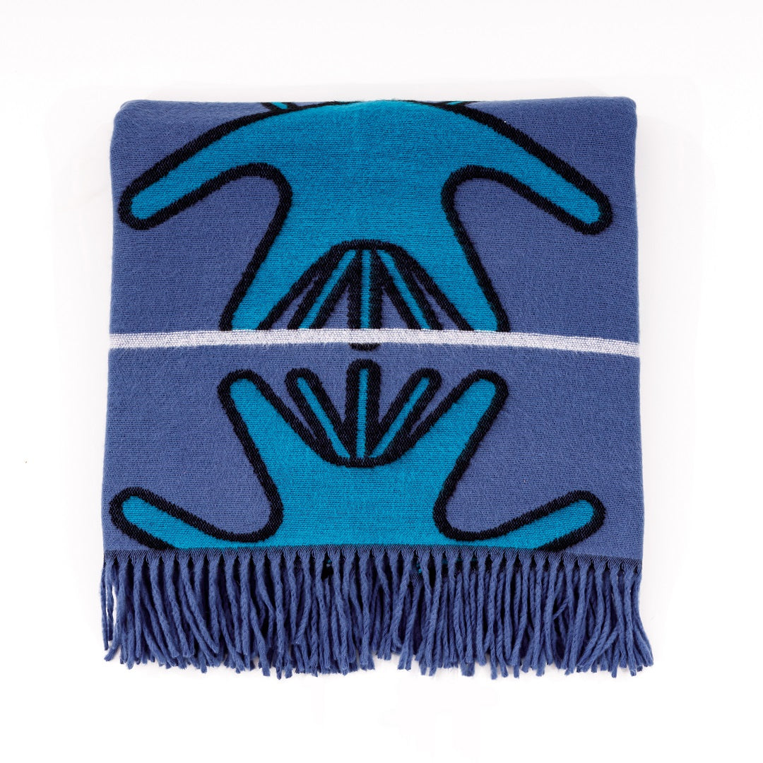 Khalala means a person who has emerged victorious, they are the winner. The design features a series of shields surrounded by clubs symbolising their great achievement. Khalala represents innovation, independence, determination, courage, sincerity and hard work. The shawl wearers would say 'Rona re Likhalala (We are victorious),' or 'Na ke Khalala (I am victorious)' in celebration of what they have achieved.