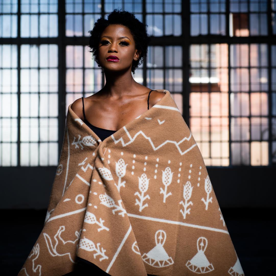 Inspired by Litema, a form of Basotho mural art, the design tells the story of the Basotho people’s traditional lifestyle. The people are represented by the distinctive Basotho
