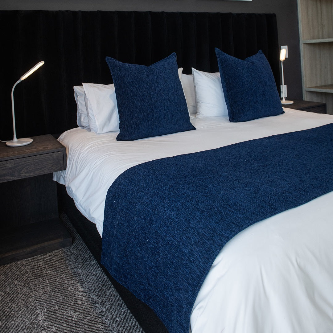 Aranda has developed a beautiful, yet hard-wearing chenille fabric for its range of plain colour runners and scatter cushions.