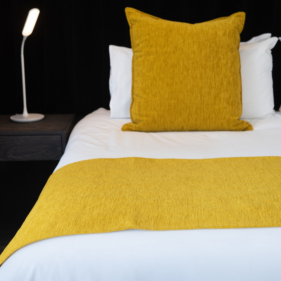 Aranda has developed a beautiful, yet hard-wearing chenille fabric for its range of plain colour runners and scatter cushions.