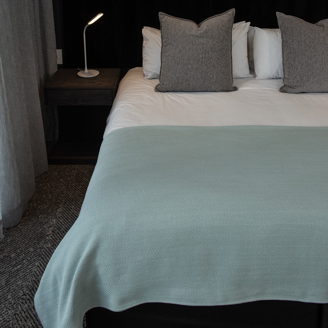 The Aranda Cotton blankets are woven from cotton grown and spun in South Africa. Cotton is a natural fibre that is known for its breathability and excellent wicking properties. This makes these 100% cotton blankets comfortable, durable, warm in winter and cool in summer. The timeless herringbone weave of the Chevron design creates a beautiful surface texture.