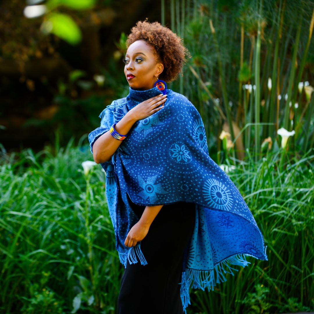 The distinctive Shweshwe fabric inspired this colourful wrap. Named after the Sotho King, Moshoeshoe 1, it is the quintessential fabric of Southern Africa.