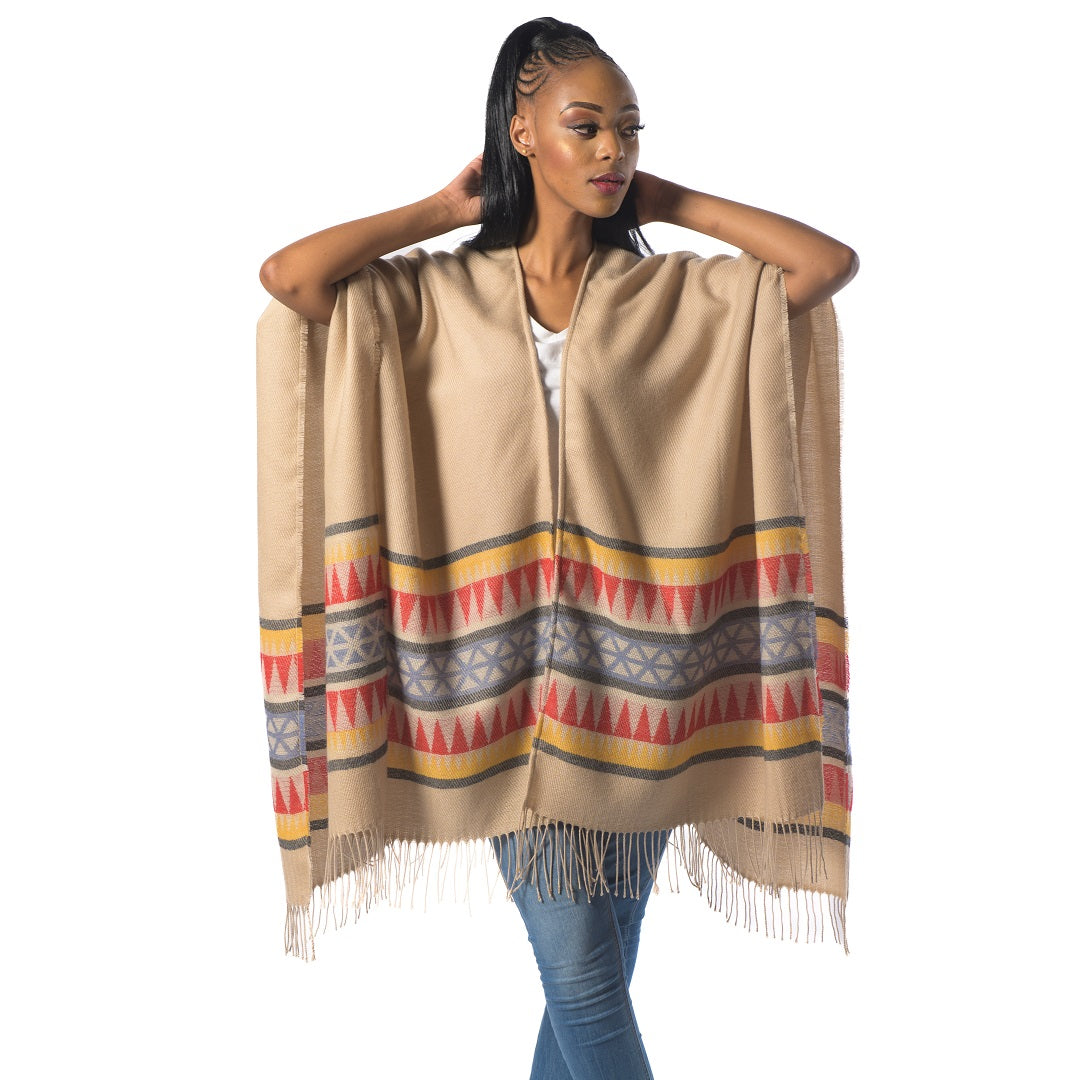 Our trendy wraps are woven from soft high bulk acrylic yarn. Because of this, they are light weight without compromising on warmth.