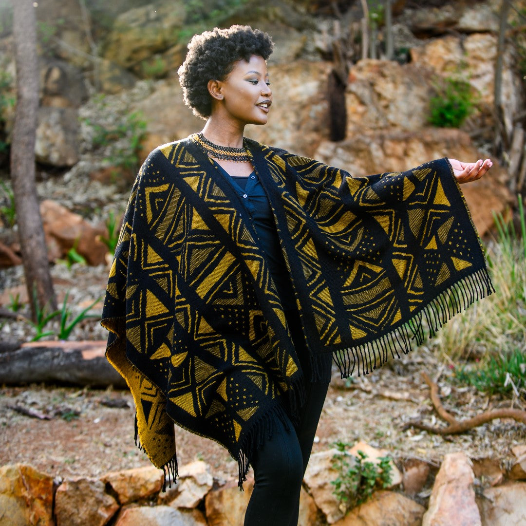 This wrap draws inspiration from the traditional cotton fabrics of Mali. The men weave the fabric, after which it is given to the women, who dye it using mud that has been fermented for up to a year.