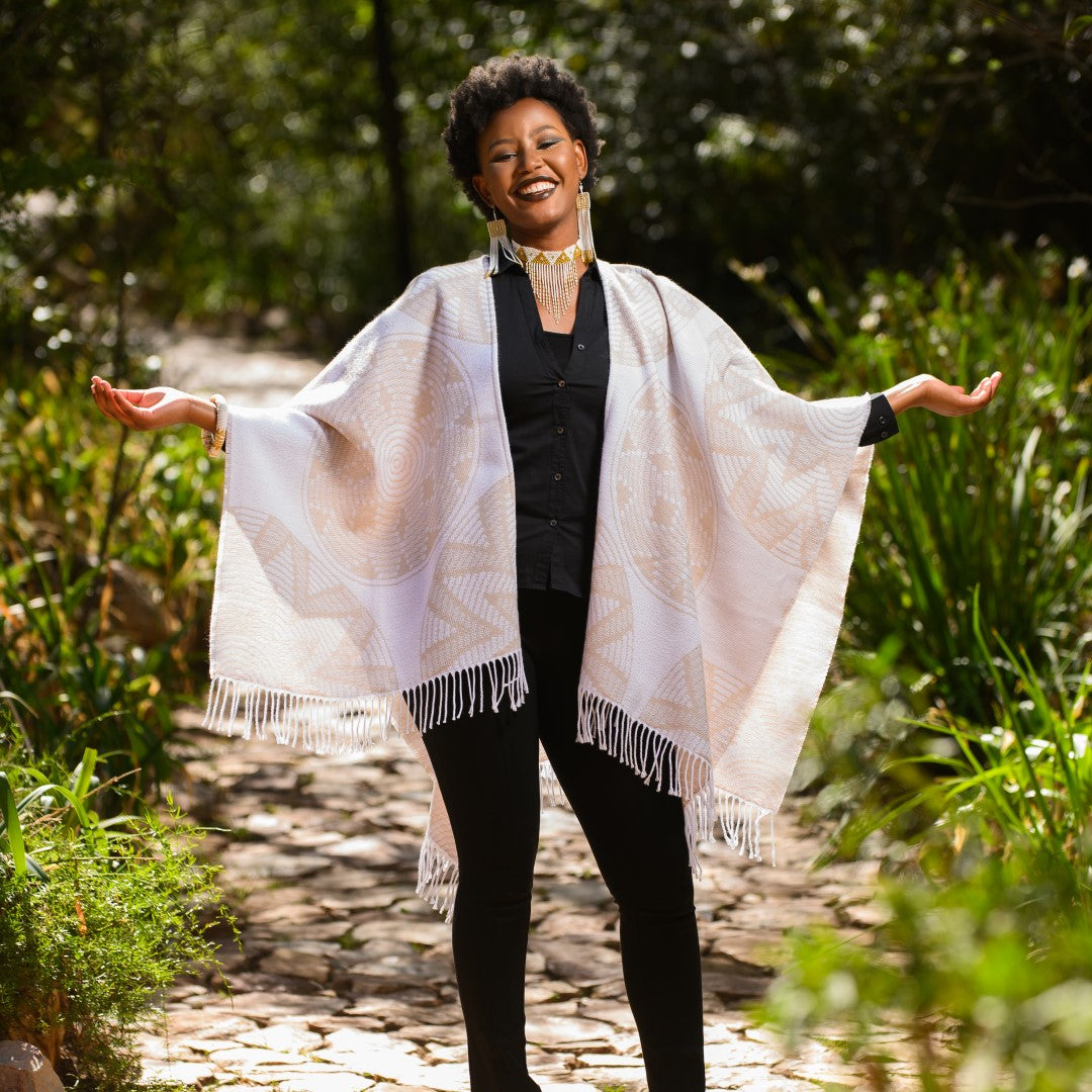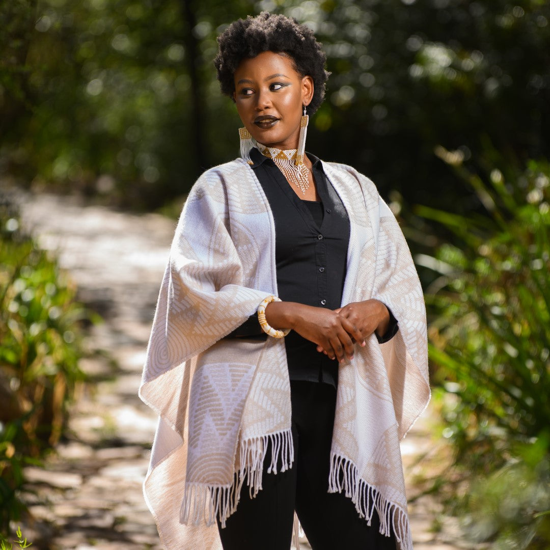 Rwandan women are world-re- nowned for their woven baskets, which inspired this wrap. Their skill has been passed down through generations.Β