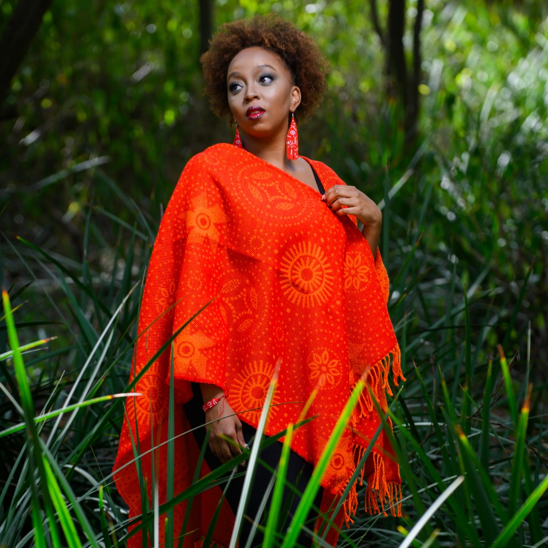 The distinctive Shweshwe fabric inspired this colourful wrap. Named after the Sotho King, Moshoeshoe 1, it is the quintessential fabric of Southern Africa.