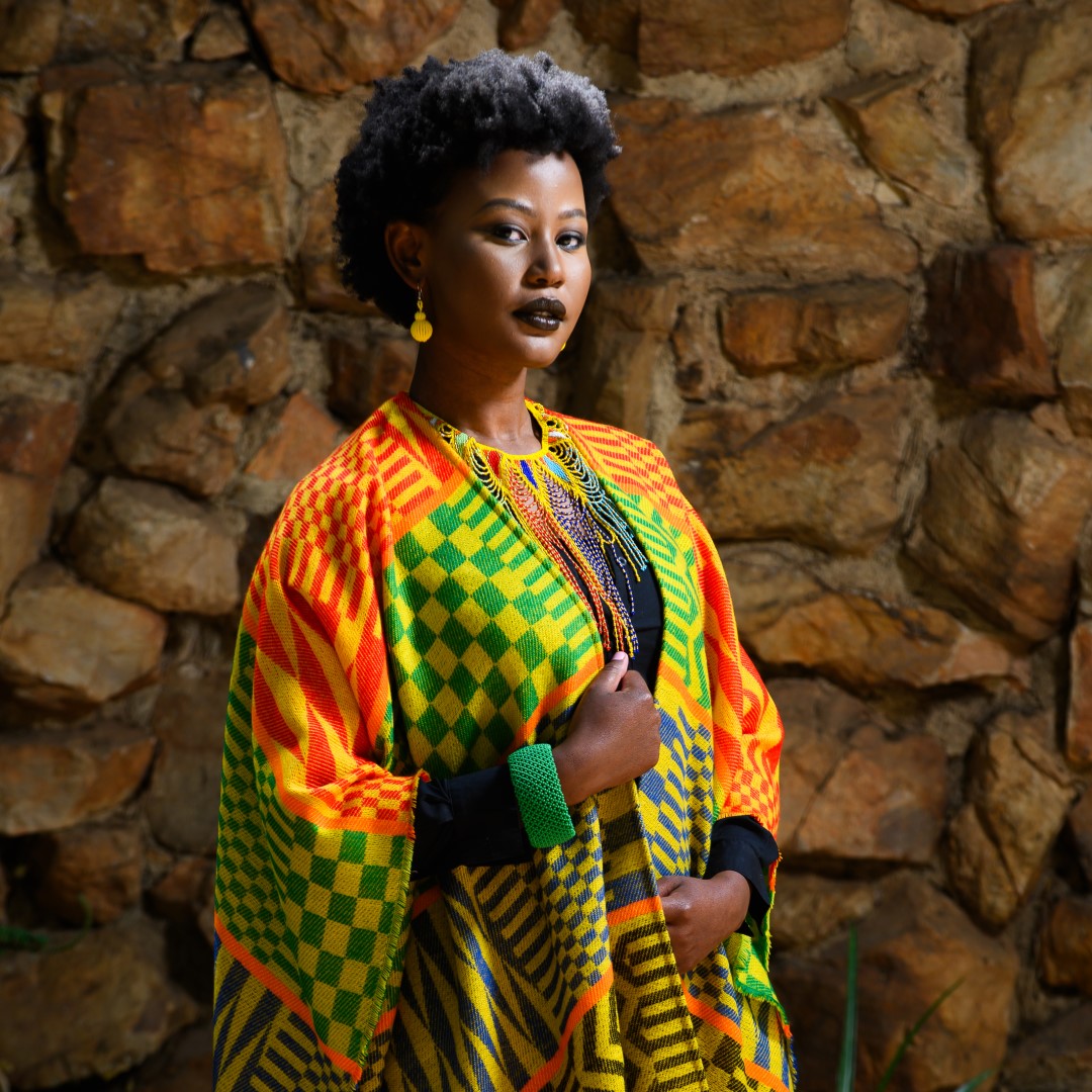 This vibrant wrap has been inspired by the colourful Kente fabric which originated in West Ghana in the early 11th century. It was originally the royal cloth of kings, worn only in times of extreme importance. While its esteem remains high, Kente cloth is today in wide use.