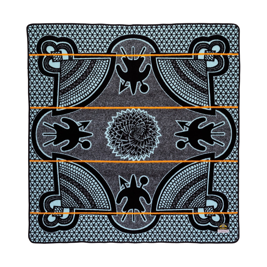 A Basotho blanket called Kharetsa, named after the spiral aloe which is only found in the Maluti Mountains of Lesotho. The Kharetsa blanket has been cemented as one of the iconic Basotho Heritage blankets for the past ten years. The design features the strictly balanced spiral aloe prominently in the centre. It is surrounded by iconic Basotho hat and shield motifs. The Kharetsa Woollen Basotho blanket is available in a variety of colours and it's size 155cm x 165cm with a composition of 50% Merino Wool and 50% Dralon Acrylic.Â