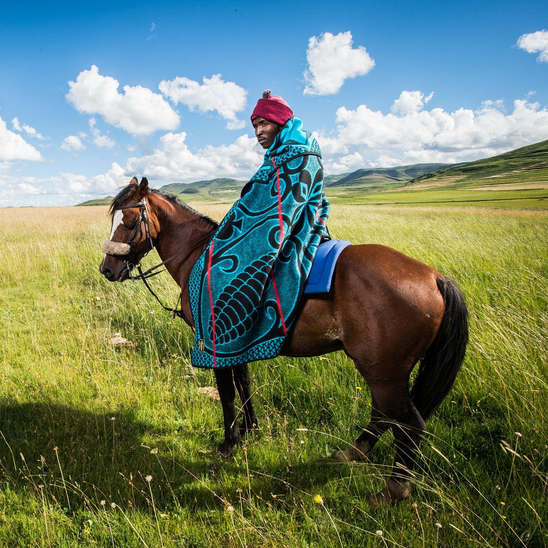 The Acrylic Basotho Khotso is an entry-level Basotho blanket and is manufactured from acrylic. It is available in a smaller size which is suitable for children and favoured by tourists as a memento.