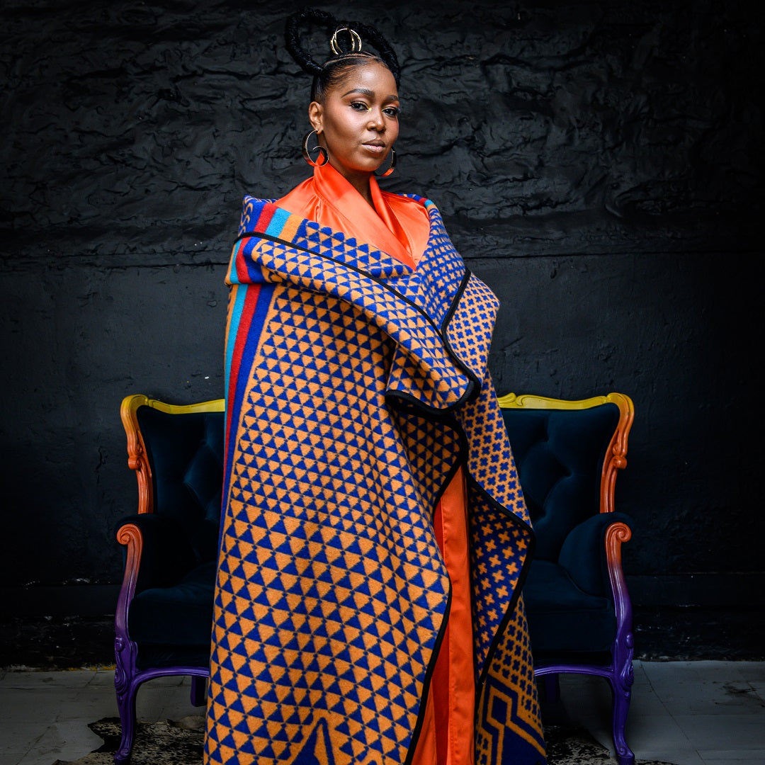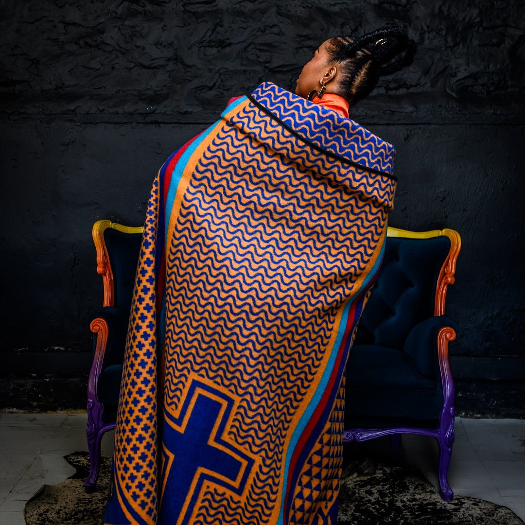 This blanket was inspired by Maleh’s late grandmother, Matlelima Anna Hlalele. Above all of her achievements in life, it is her role as a spiritual leader and nurturer that remains the most important, which she played as the matriarch of her family. Kobo ea Poloko is inspired by one of her grandmother’s favourite verses, Isaiah 61v3 which speaks of being ‘Clothed with the garments of Salvation". This blanket seeks to inspire a nation that continuously strives in faith, as can be heard in the words of the Lesotho National Anthem "Molimo a ko boloke Lesotho". Even in the wake of the independence of African countries in the 1960's, Lesotho is one of the many countries that continued to be faithful to the Christian teachings of the early missionaries. The design features a combination of iconic Basotho and Christian symbols.