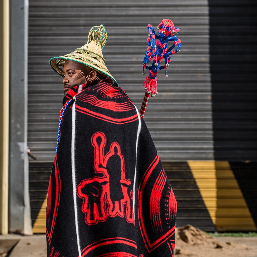 The Leisa blanket design draws its inspiration from Kamohelo "Leisa" Chabana's deep reverence for Basotho tradition, culture, and the rites of passage associated with initiation school. Portrayed within the design is the founder himself, captured in a touching moment post-initiation, holding a knobkierie in his right hand, accompanied by his faithful canine companions. A picture that reflects the pride and honour ‘Leisa’ feels during this important rite of passage into manhood.Â
