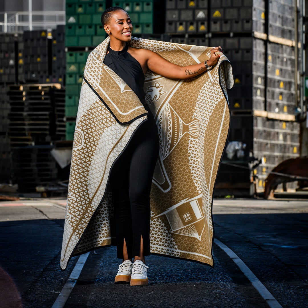 Letsatsi means the Sun in Sesotho, which forms the centre of the blanket design. It is a universal and powerful symbol representing, life, energy and hope. Letsatsi is also the name of the designer’s father. The blanket features iconic motifs of the Basotho culture and is meant to serve as a way to teach people about the blanket wearing tradition, as well as their everyday life. Whether it is hot or cold, the blanket is worn and is seen as an integral part of a Basotho person’s outfit. A blanket is very important to this culture and it is highly valued throughout the year.