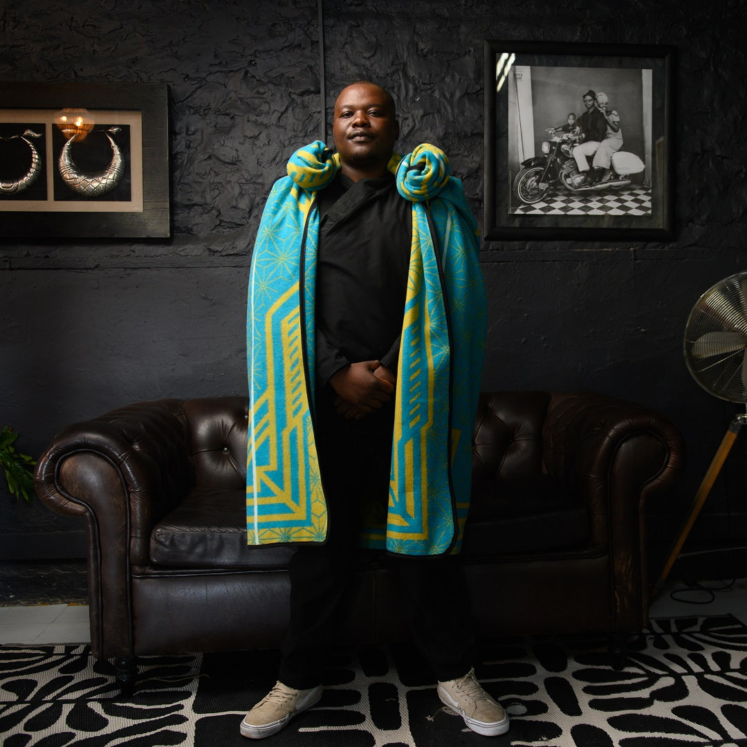 This blanket pays homage to Basotho women for their artistic use of Litema which are the geomatric patterns they use to decorate their huts. A man can build a house but only a woman can build a home. As a token of appreciation this design celebrates their strength, resilience and patience. The interlocking patterns signify how women hold our families together. The iconic maize which is Lesotho’s staple food has been placed at the centre of the design to tie together the old and new while showing how women are the backbones of our society.