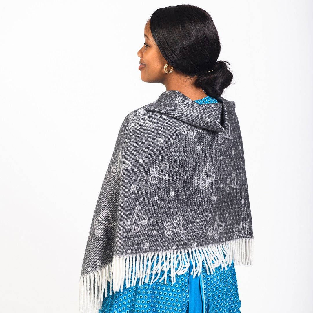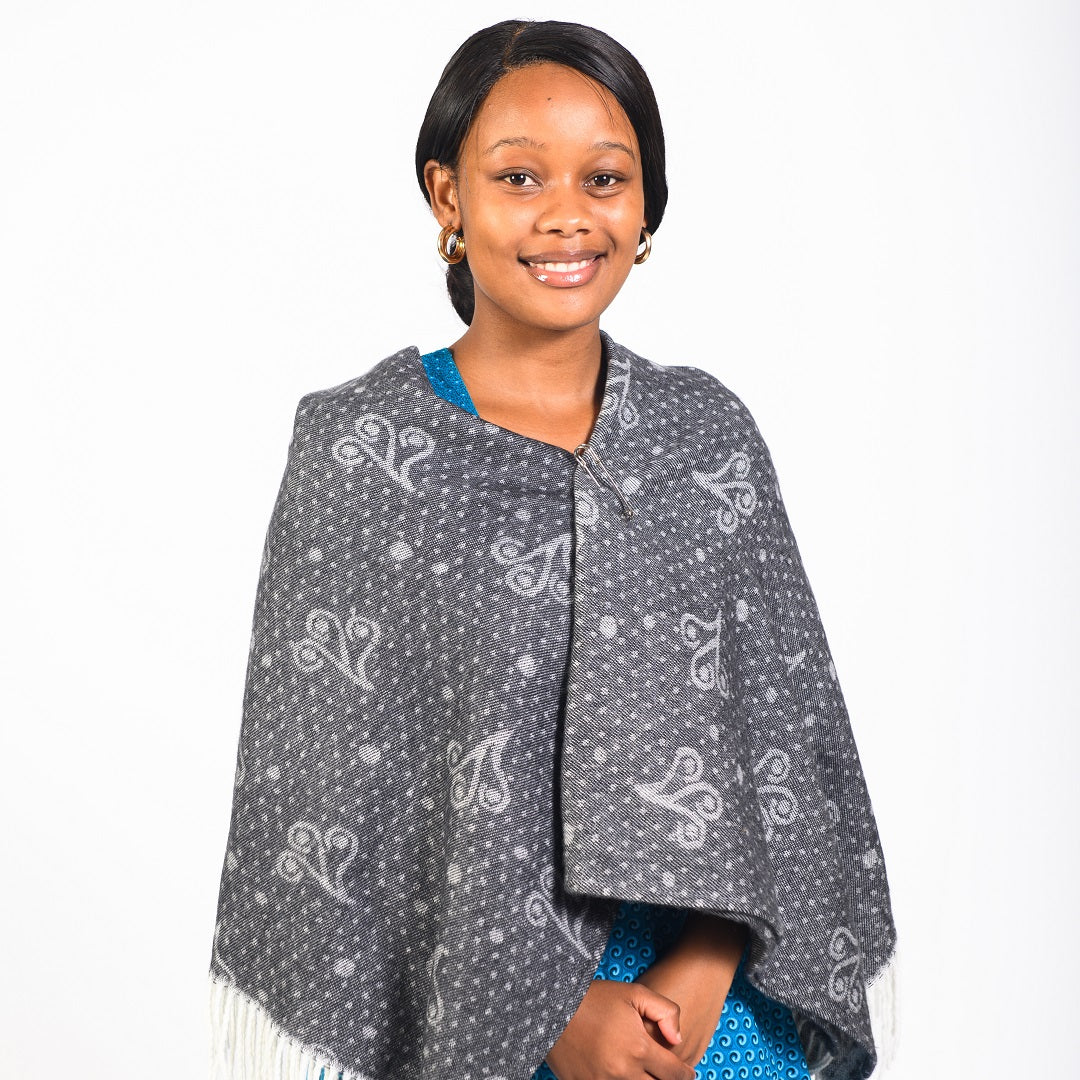 The Makoti wedding shawl is inspired by the shweshwe (shoeshoe) fabric that is worn in traditional Southern African wedding and other traditional ceremonies.