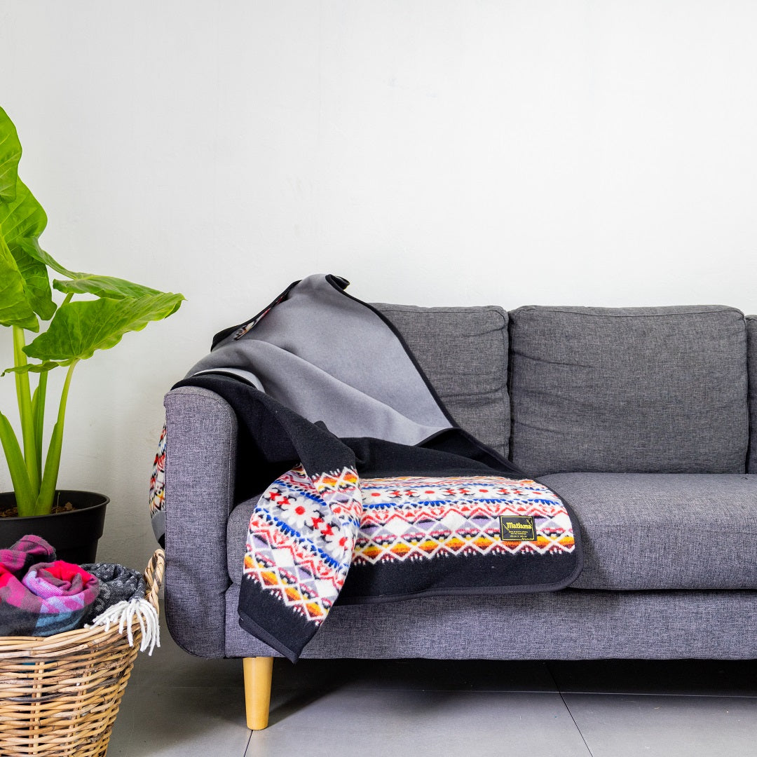 The Matlama features a striking border pattern with a plain reversible center. It is the only Basotho blanket designed this way.