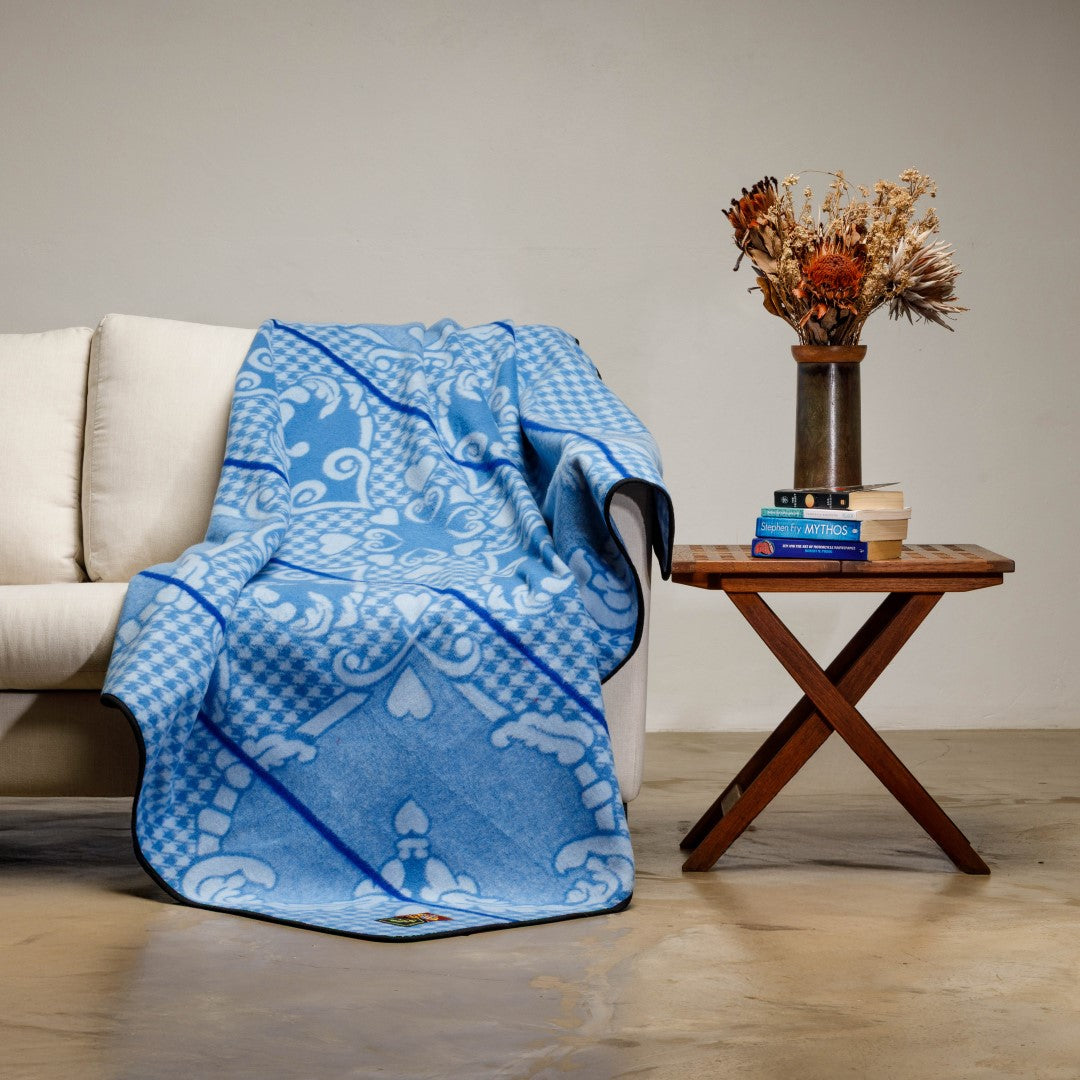 This blanket was created to honour the birth of Crown Prince Lerotholi in 2007. The design features a collection of elaborate hearts which symbolise the love of the Basotho people for the Royal Family.Β The word Motlatsi means successor in title.