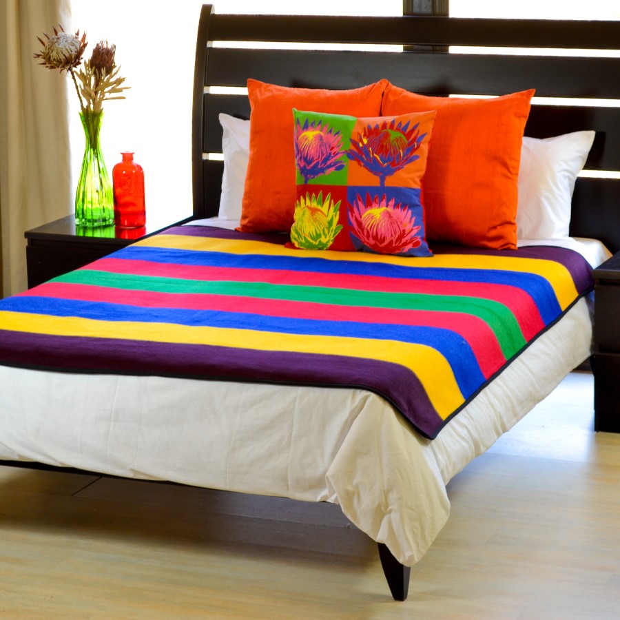 The Umbhalo blanket is 90% acrylic and 10% polycotton, with its vibrant stripes, is used by the Ndebele tribe. This Ndebele traditional throw is only worn by married women. Beadwork is often added to these blankets and they are worn during traditional ceremonies.