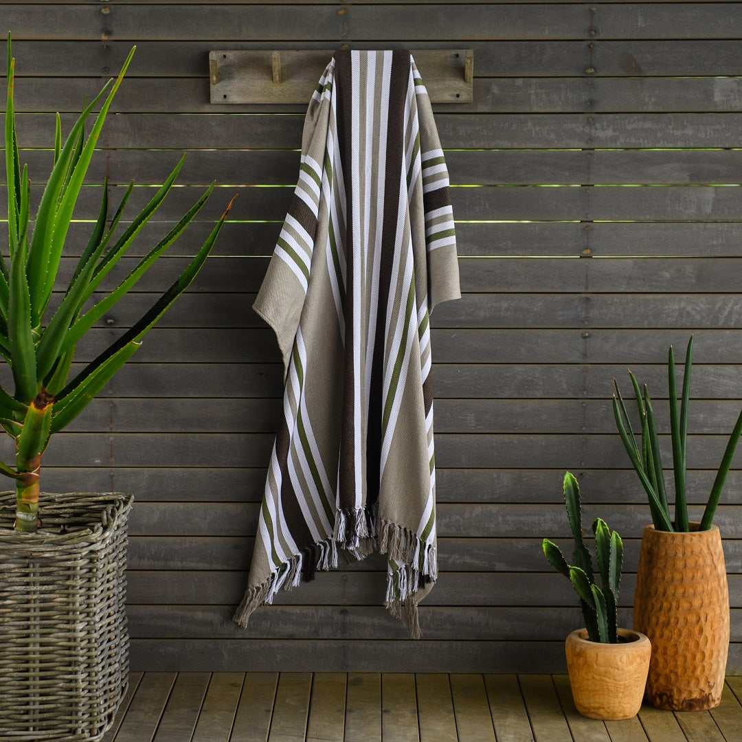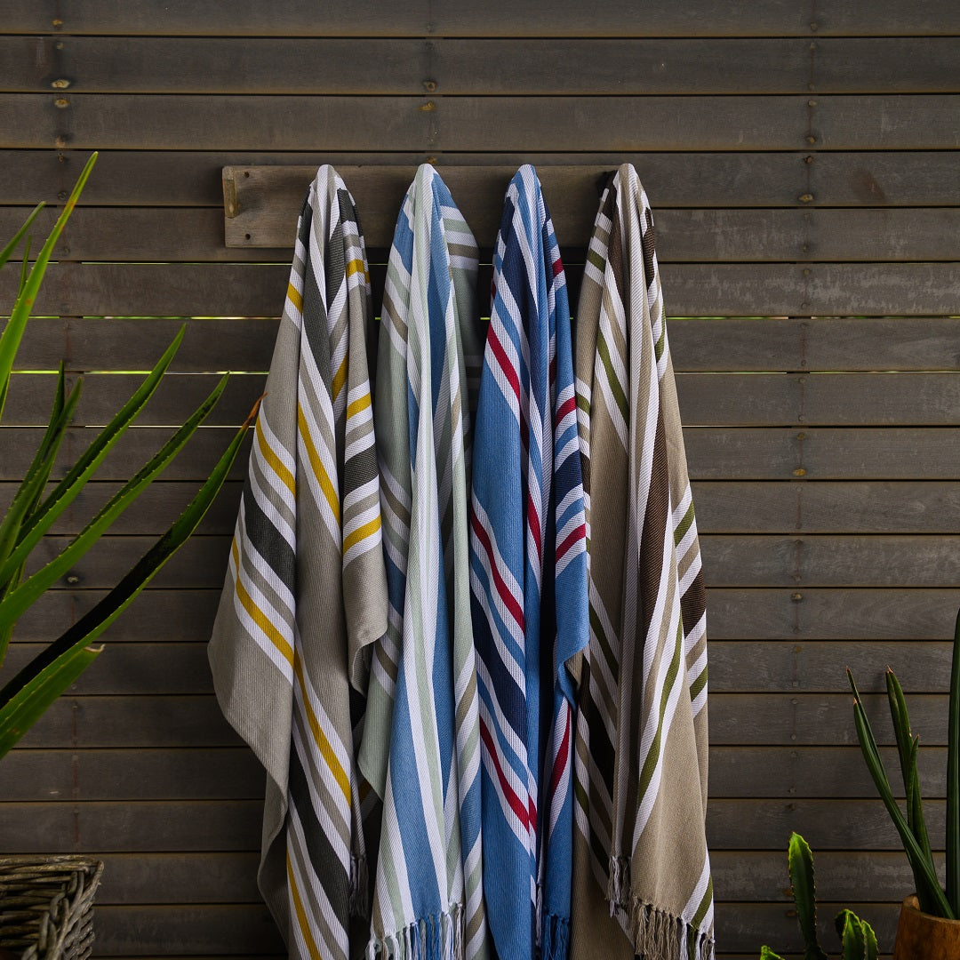 These unbrushed cotton rich throws are suitable for both indoor and outdoor use. With hand-knotted fringes and a contemporary striped design, the Protea Pinstripe is the ideal versatile throw.