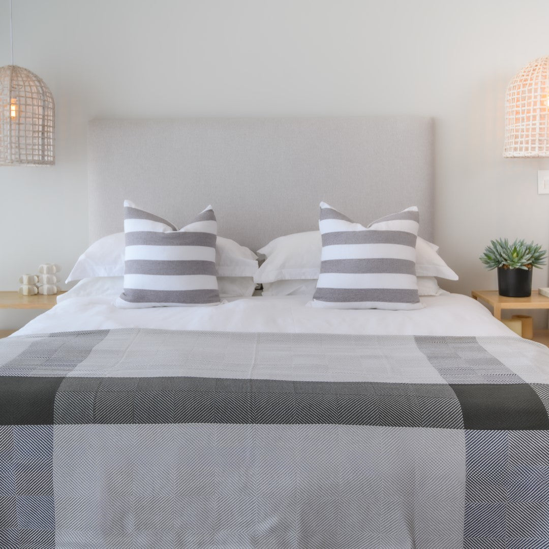 This generously sized cotton blend throw can be used as a bed or sofa cover. The use of colour and design is accentuated through the art of dobby weaving, creating an elegant, textured finish.