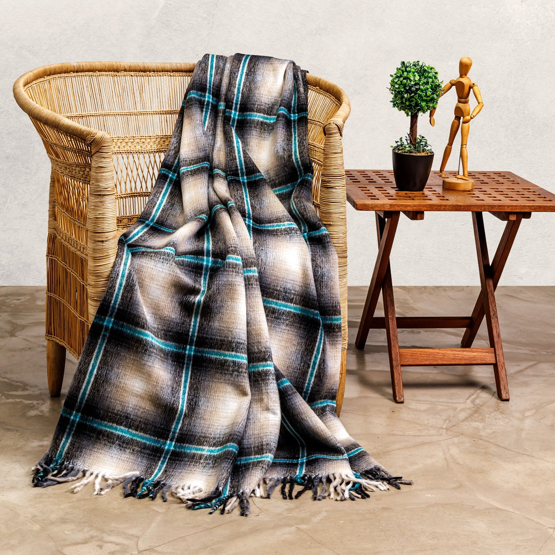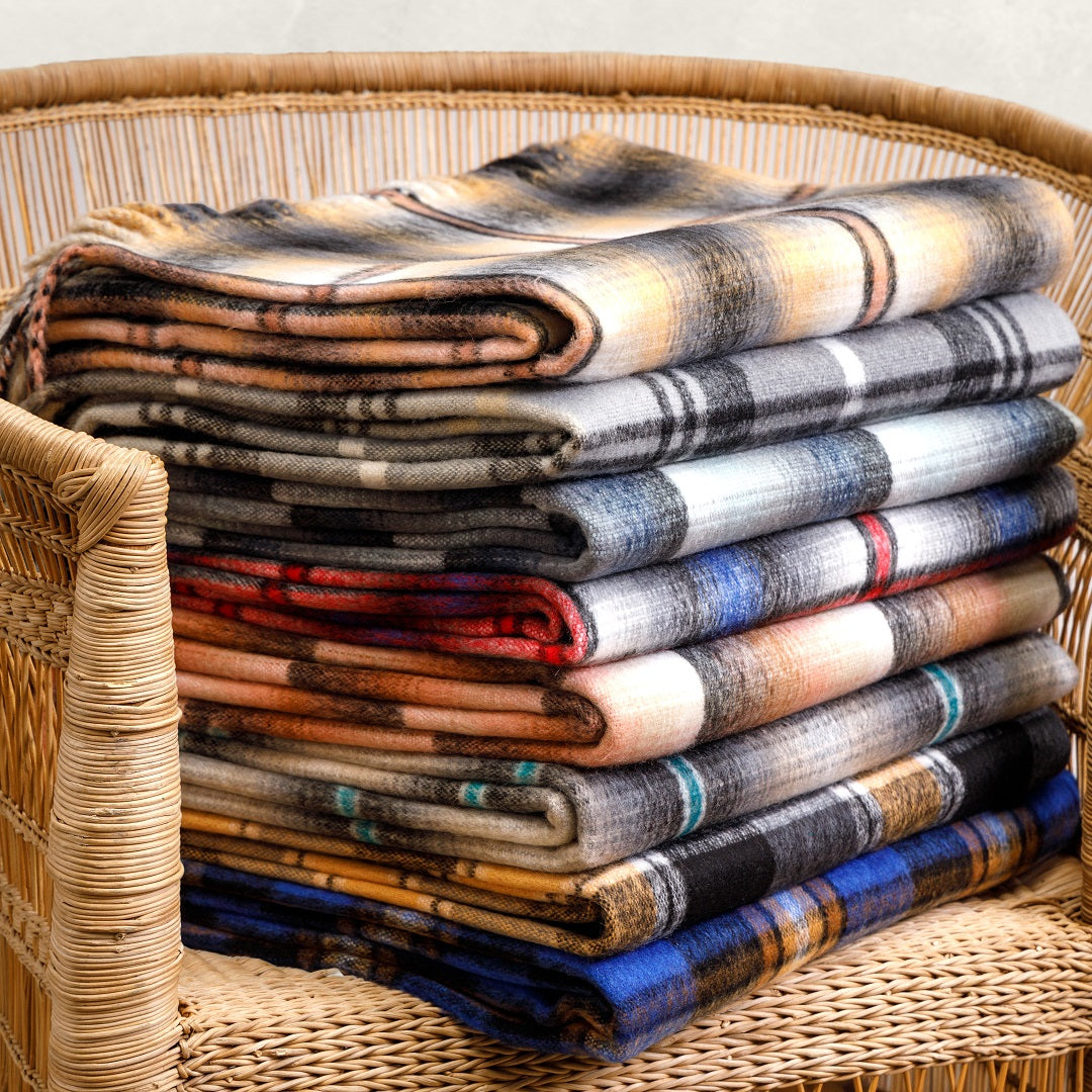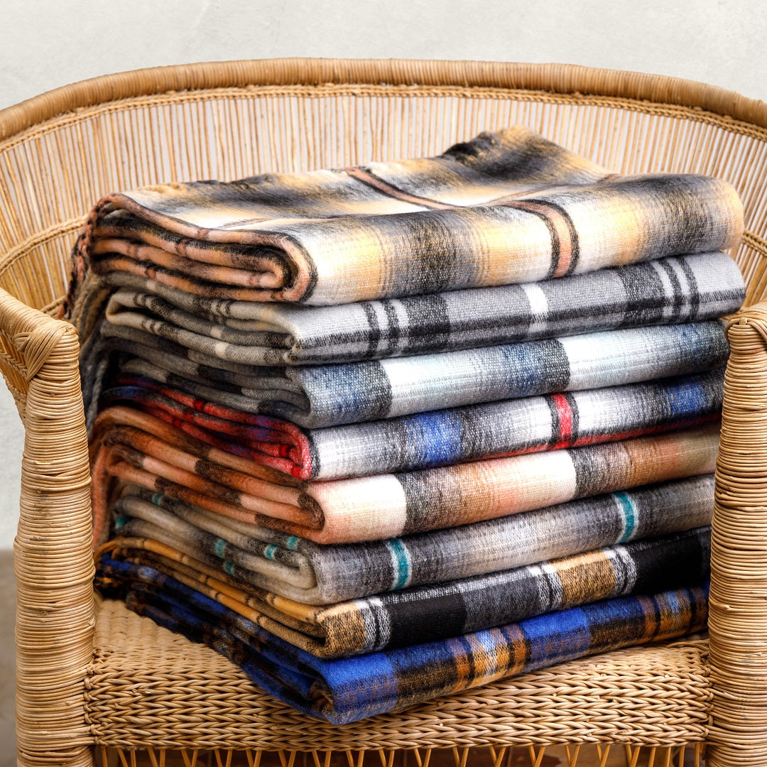100% acrylic. The Top Check shawl is traditionally worn around the waist.