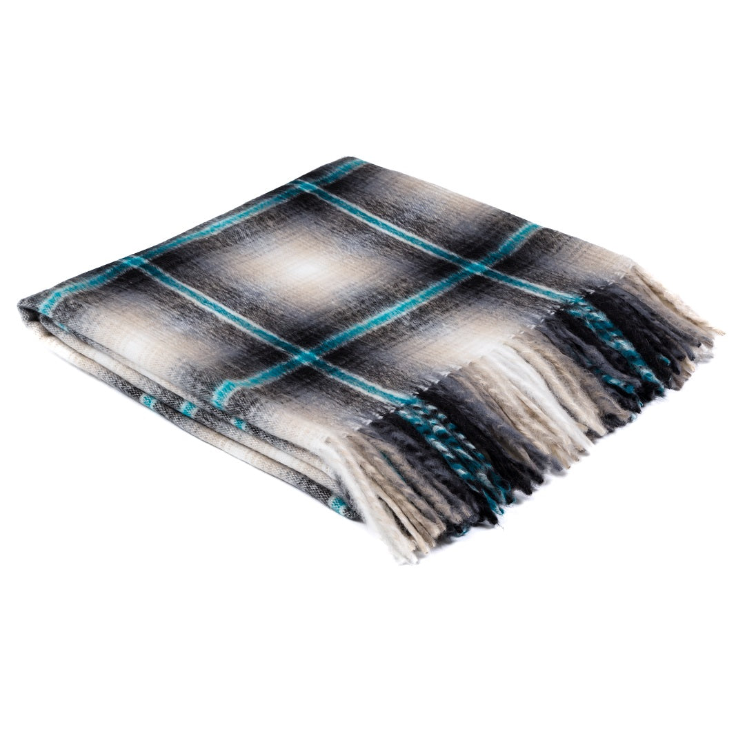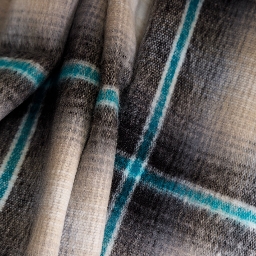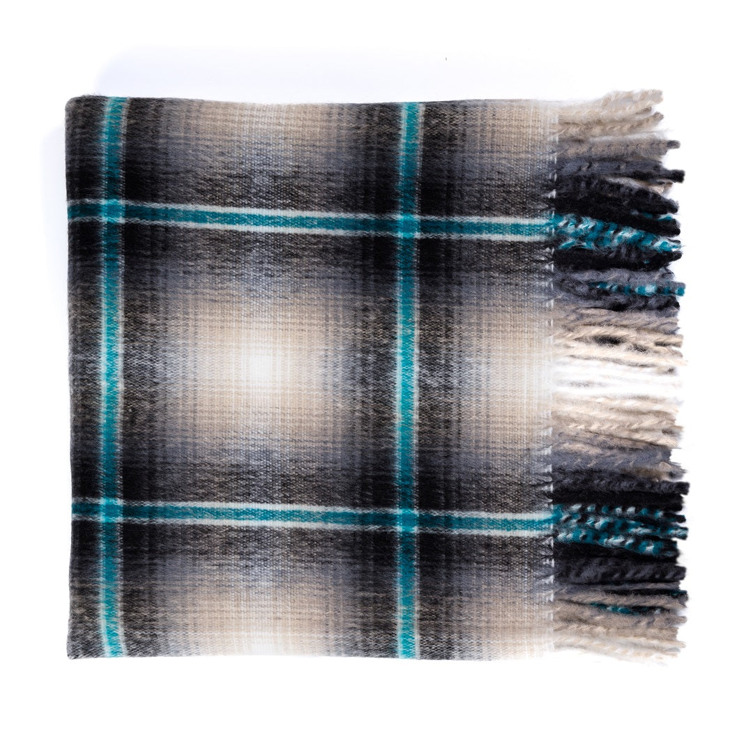 100% acrylic. The Top Check shawl is traditionally worn around the waist.