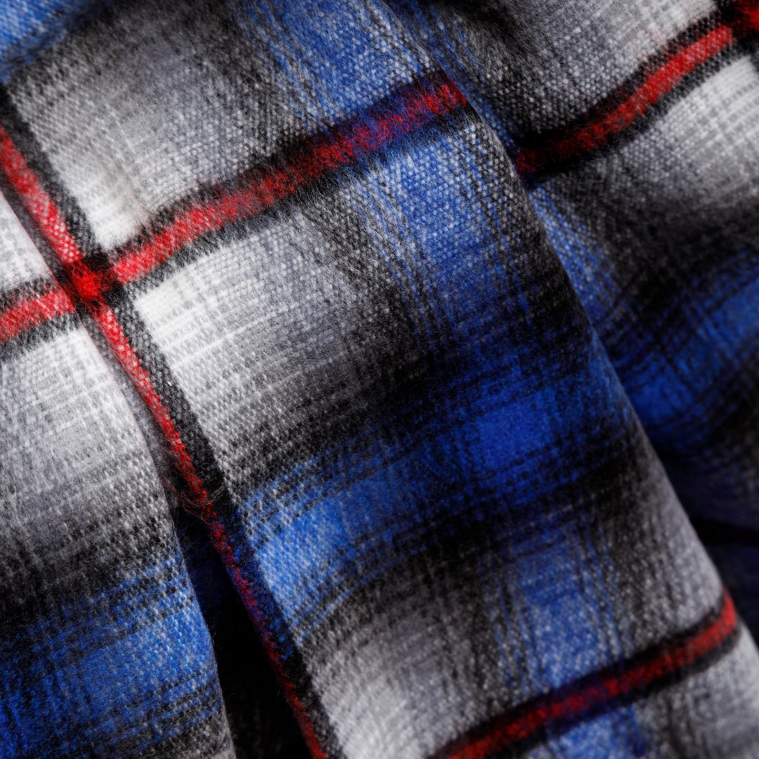 100% acrylic. The Top Check shawl is traditionally worn around the waist.
