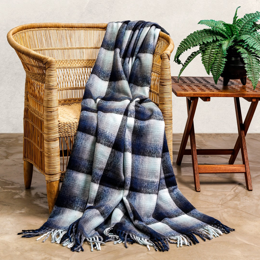 100% acrylic. The Top Check shawl is traditionally worn around the waist.