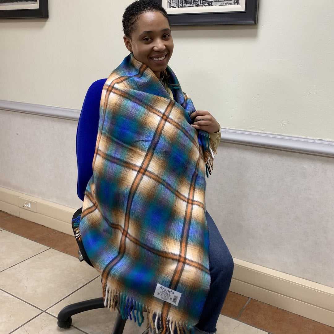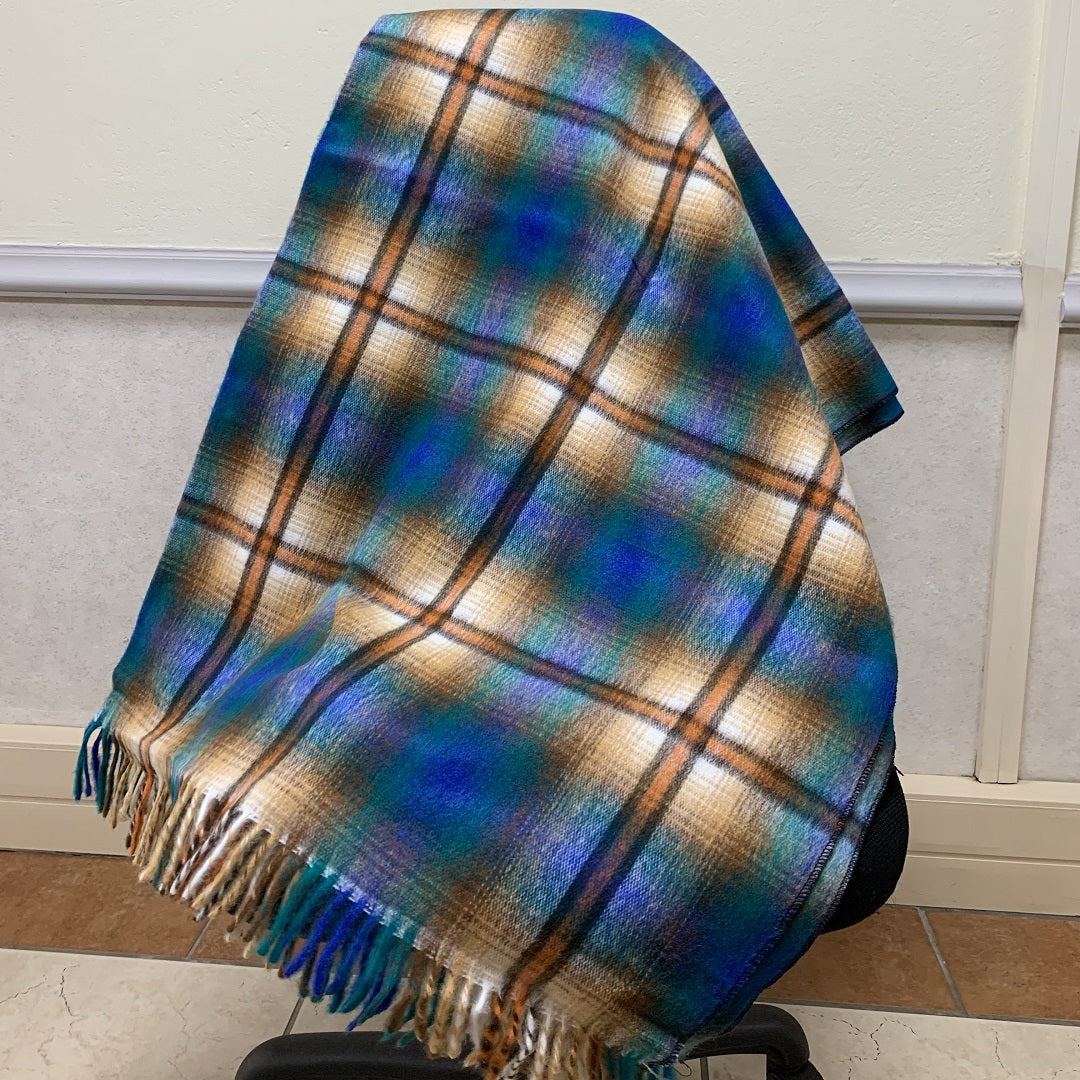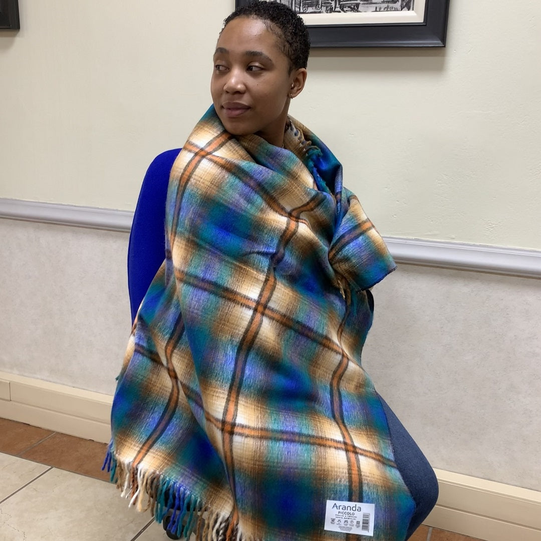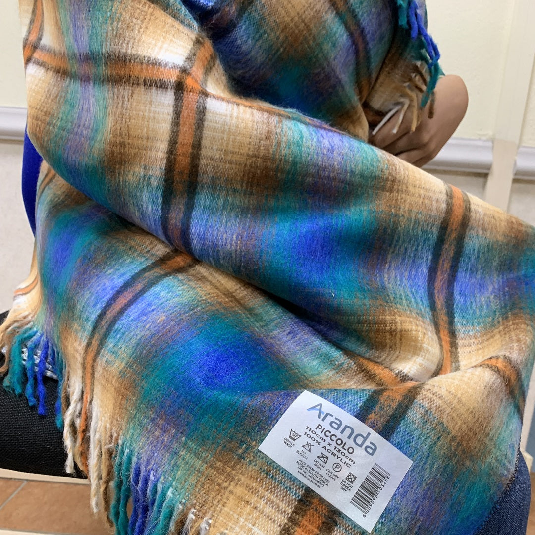 100% acrylic. The Top Check shawl is traditionally worn around the waist.
