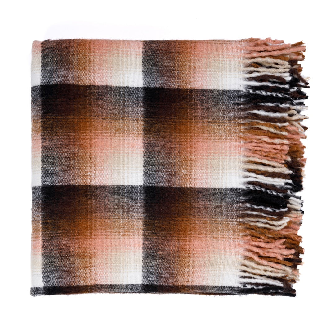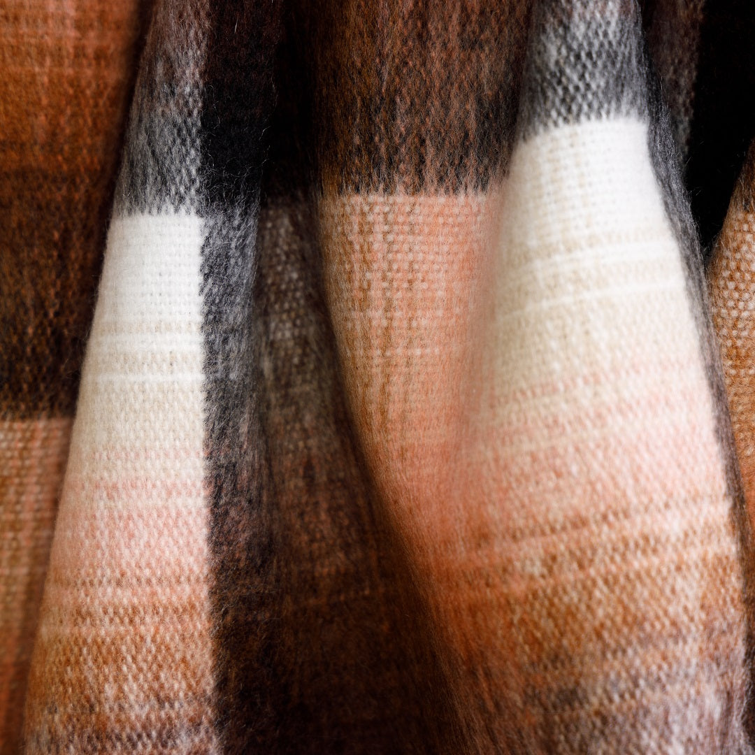 100% acrylic. The Top Check shawl is traditionally worn around the waist.